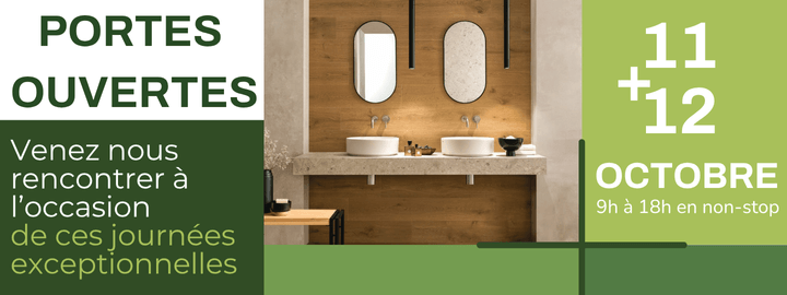 grès cérame, carrelage déco, meuble de bains, meuble de rangement, miroirs & armoire de toilette, mitigeur & colonne de douche, etc…